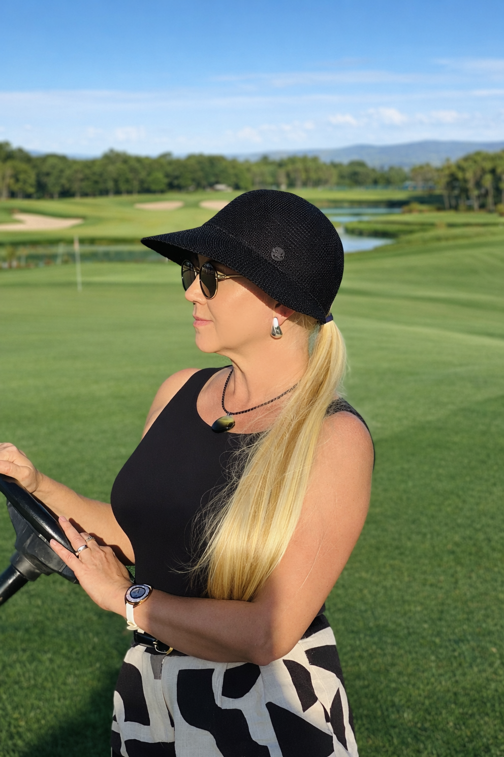 Covered in microfiber this visor features a broad brim and well cushioned arms. The arms of our visors do not dig into the side of the head and are widely acknowledged as the most comfortable visor on the market.
